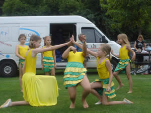 4. Juli -Sport-Spiel-Spaßfest- Diesmal fand das Fest auf dem Sportplatz A.-Diener-Straße statt. Wir hatten nur ein kleines Programm zusammen bekommen, da viele am Vormittag nicht schulfrei bekommen hatten. So zeigten die Dogs den Piratentanz sowie Shakira. Leider hörten sie nicht viel von ihrer Musik, weil die Technik nicht so richtig funktionierte. Den Happy Dancern ging es bei Hit the Road Jack und Unendlich ähnlich. 6. Juli -Vereinsfest des Show-Ballett- Wir hatten unsere Mitglieder und Eltern zum traditionellen Schuljahresabschluß-Fest eingeladen. Vorwiegend die jüngeren Mitglieder waren mit ihren Eltern erschienen und vergnügten sich bei Kinderschminken, Basteln und vielen Spielen. Aber auch die Eltern machten aktiv beim Eierlaufen mit und alle hatten viel Spaß. 11. Juli -Sommerfest im Kindergarten Pinocchio- Pünktlich 15.30 Uhr sollte es los gehen, doch genau zu diesem Zeitpunkt kam ein großes Gewitter. So warteten alle auf das Ende des Regenschauers, doch es regnete und regnete... bis wir dann alles in die Räume des Kindergartens verlagerten. Wir zeigten 4 kleine Tänze auf engstem Raum, trotzdem machte es den Kindern großen Spaß.
