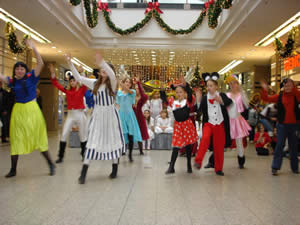 2. Dezember -Goethe Galerie- In Jena fand an diesem Tag das große Konzert Rock gegen Rechts statt. Viele rechneten mit einem Verkehrschaos und sagten den Auftritt ab. Doch das Caos blieb aus und man konnte sogar in der Goethe Galerie mehr als bequem parken. Nun fehlten uns viele Kinder und wir mussten einiges umstellen. Dann lief das Programm jedoch perfekt und wir hatten sogar viele Zuschauer, die den Tänzern reichlich Applaus spendeten. 3. Dezember -Burgau Park- Bereits einen Tag später waren wir im Burgau Park zu Gast. Die Kinder wirbelten als Nußknacker, Micky und Minni, Schneeflocken und vielem mehr über die Bühne und viele Zuschauer verschoben ihren hektischen Einkauf und schauten erst einmal unseren Tänzern zu.