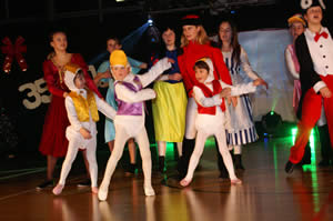 16. Dezember -Goethe Galerie- Unser letzter Weihnachtsauftritt fand in der Goethe Galerie statt. Nocheinmal präsentierten wir unsere vielen weihnachtlichen Tänze, danach wanderten die Kostüme wieder für 1 Jahr in Koffer und Kisten zurück. 18. Dezember -35 Jahre Show-Ballett Formel I- Im Sporthallenkomplex Lobeda-West begingen wir unser Jubiläum unter dem Motto "Rückblicke-Augenblicke-Weitblcke". Wir zeigten aus vergangenen Jahren viele alte Tänze im neuen Gewand. Es gelang uns auch, einige ehemlige Tänzer wieder zufinden und sie studierten den beliebten Tanz der Nonnen ein. Aber auch Micky und Minni schlüpften noch einmal in ihre alten Kostüme. Eine 2stündige Revue begeisterte das Publikum. Am Nachmittag zeigten die Kinder für die jüngeren Zuschauer "Micky ist eingeschneit".