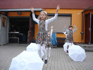 25. August -Sommerfest im Jugendclub Treffpunkt- Ausgerechnet an diesem Tag zogen dunkle Wolken auf. Mitten im Auftritt fing es dann promt an zu regnen, doch wir standen es tapfer bis zum Ende durch. Die Crazy Dancer, J-Angels und Tanzsterne gestalteten ein tolles Programm zum Sommerfest.