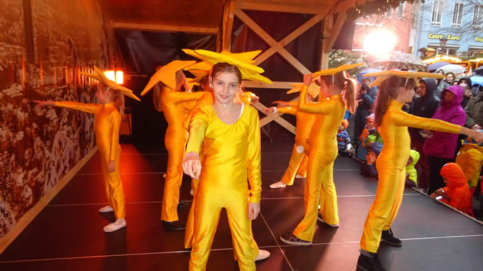 6. Dezember -50 Jahre Kita Anne Frank- Zu diesem Jubiläum traten unsere "Minis" mit dem Schneeflockentanz auf. 8. Dezember -Burgaupark- Wir waren mit einem weihnachtlichen Tanzprogramm im Jenaer Burgaupark zu Gast. 9. Dezember -Weihnachtsmarkt- Leider ist die Bühne für Tänzer viel zu klein. Wir versuchten trotzdem unser Bestes. 14. Dezember -Goethe Galerie- Und noch einmal waren wir in der Jenaer Goethe Galerie mit einem tollen Tanzprogramm unterwegs. 16. Dezember -Weihnachtsrevue im Sporthallenkomplex- Höhepunkt des Jahres ist unsere traditionelle Weihnachtsrevue. In der Kinderrevue Bibi und Tina verhexen den Weihnachtsmann verzauberten unsere Tänzer die kleinen Zuschauer. In der anschließenden Abendgala konnte man weihnachtliche Tänze, das Tanzprojekt Die Welt ist googel sowie viele Showtänze erleben. 17. - 21. Dezember - Weihnachtsfeiern- Wer tanzen kann, der kann auch gut feiern.